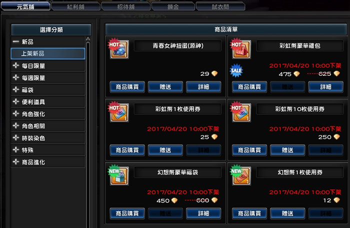 本次更有超值的「幻想幣豪華福袋」限時上架!( 原價 600 點,現在僅以 450 的優惠價發售 )